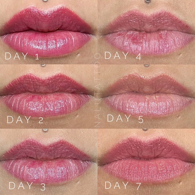 Initial healing takes about 5-10 days, during which the color may appear darker before softening. Some swelling and flaking are normal, and full healing can take up to 4-6 weeks.Can I still wear lipstick or lip gloss after the procedure?